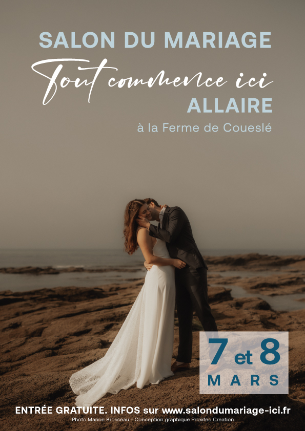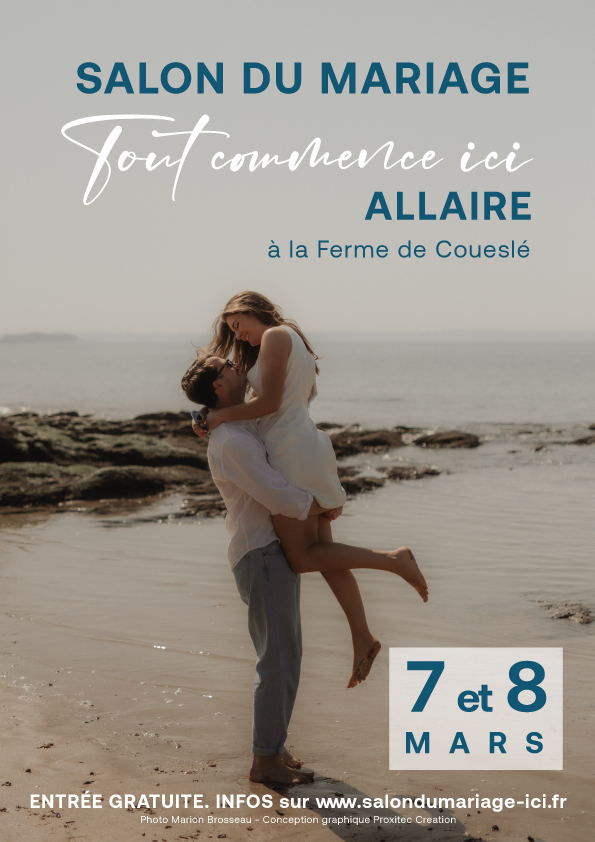Le premier Salon du Mariage d’Allaire vous accueille dans le cadre authentique et enchanteur de la Ferme de Coueslé, au cœur du Morbihan, entre océan et terres bretonnes. Idéalement située près de Redon et au carrefour des grands axes menant à Vannes, Nantes et Rennes, cette première édition rassemble créateurs, artisans et prestataires passionnés pour accompagner les futurs mariés dans la préparation de leur grand jour. Dans une ambiance chaleureuse et inspirante, venez découvrir des idées originales, des tendances élégantes et des savoir-faire locaux pour imaginer un mariage unique, dans un lieu chargé de caractère.